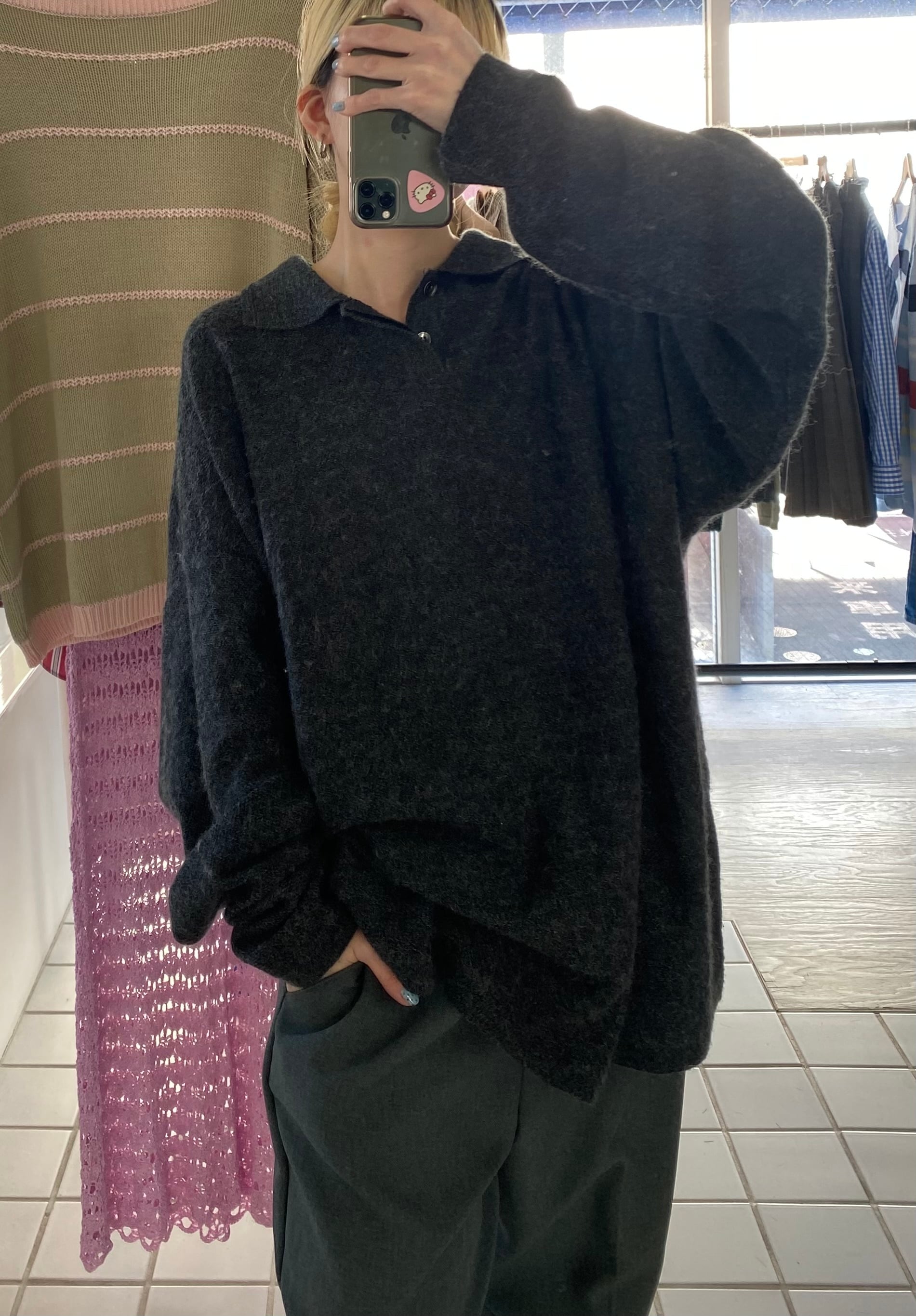 charcoal gray collar knit