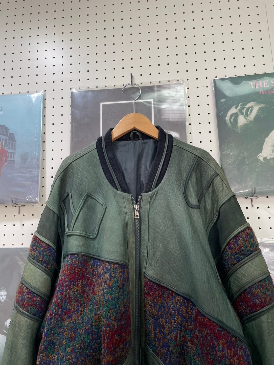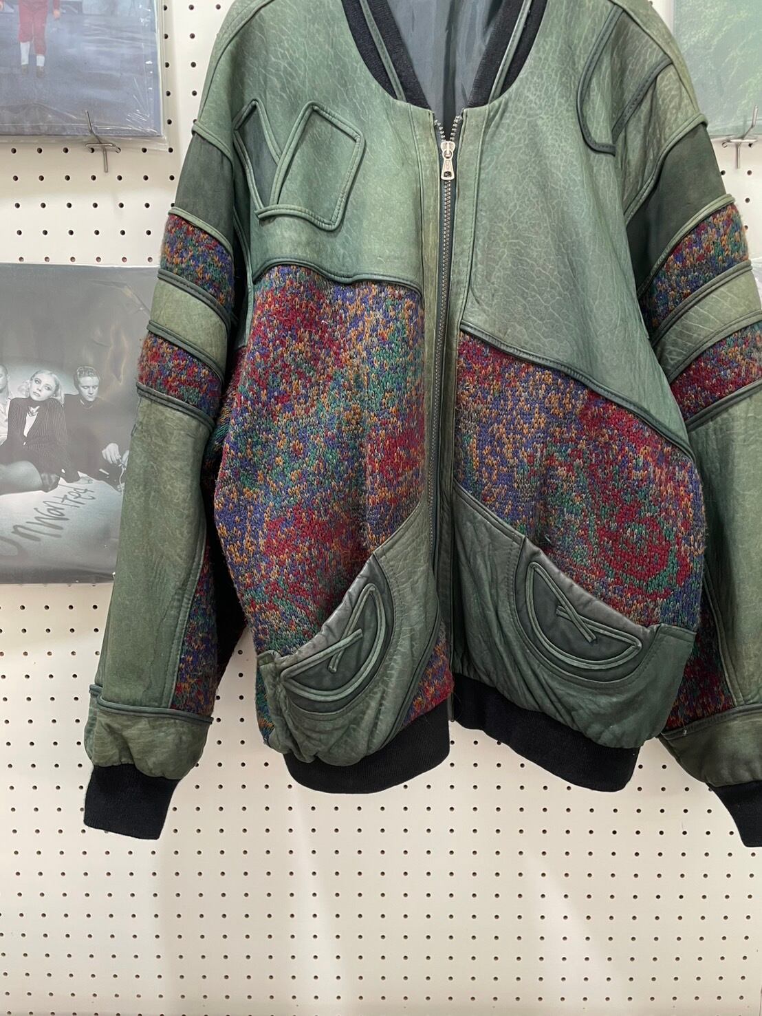 80s Euro Knit Switching Suede Jacket Loose Fit
