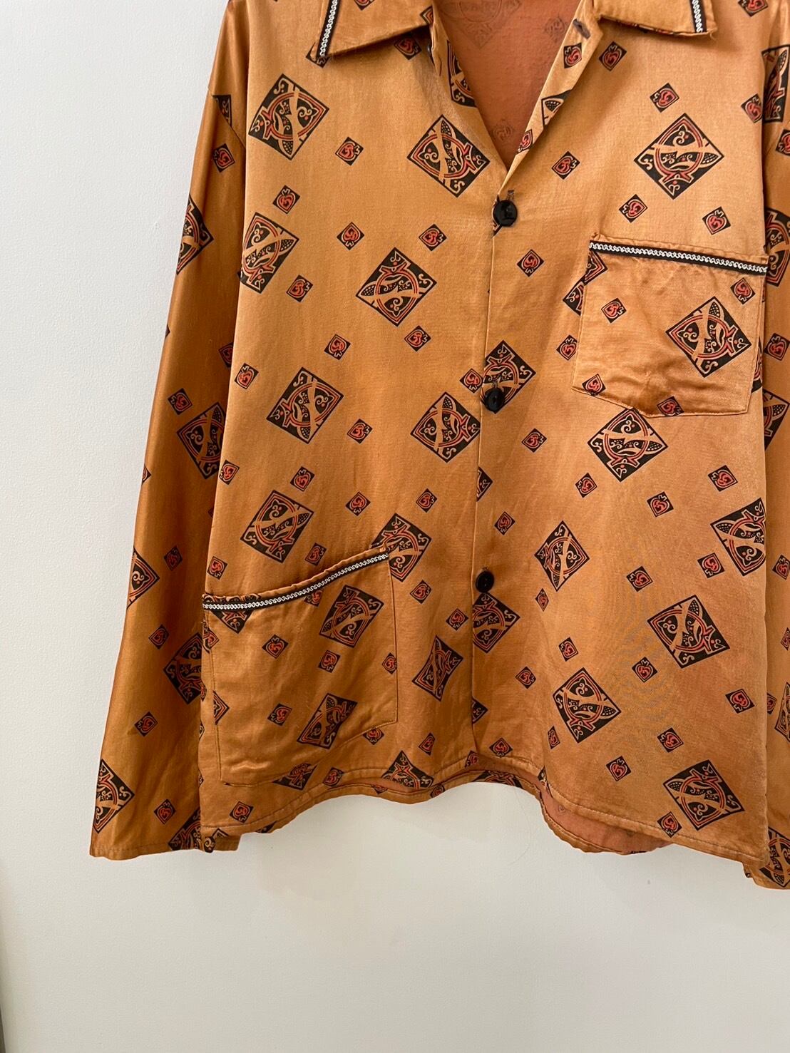 80s Open Collar Cotton Rayon Shirt