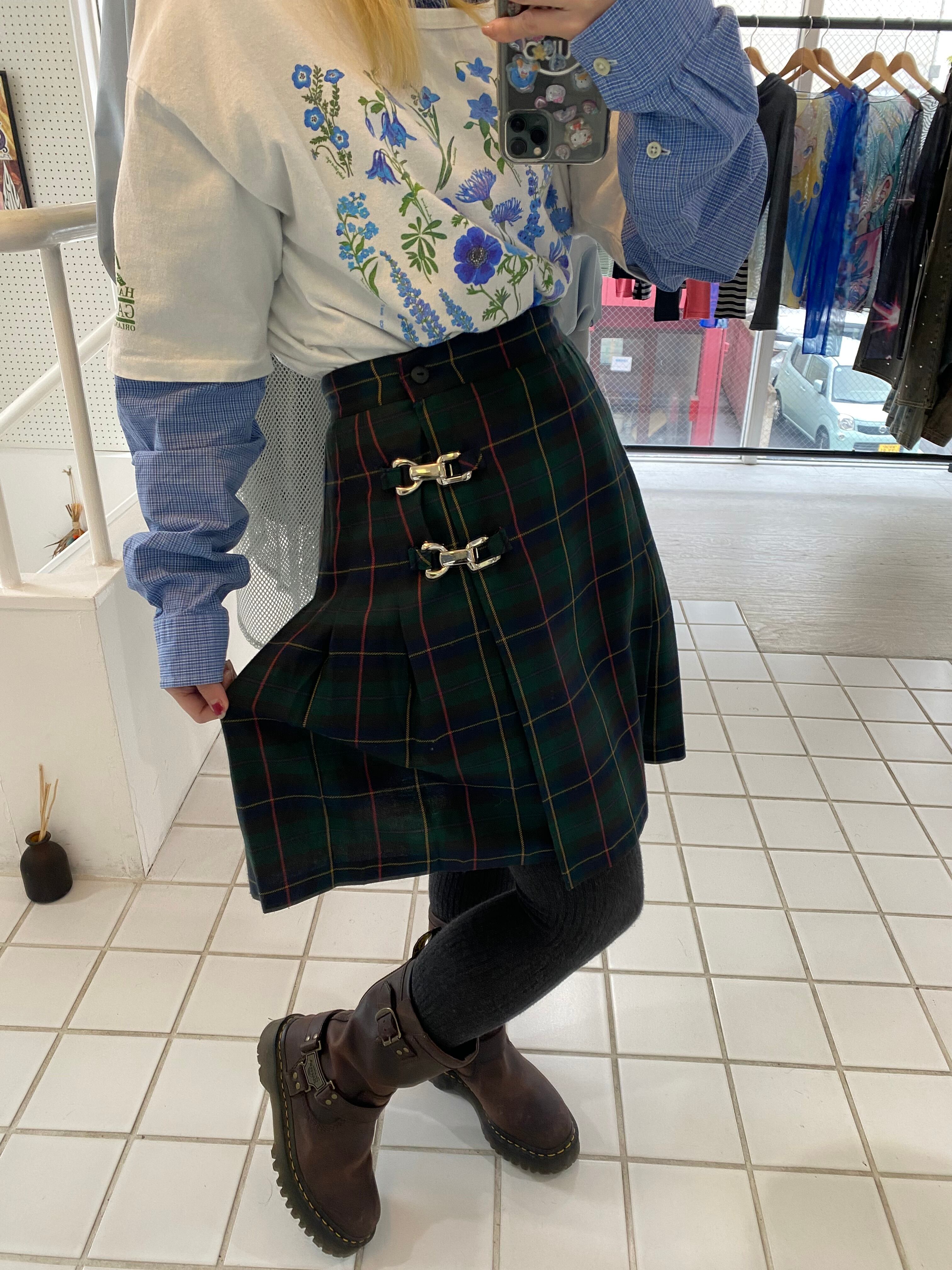 tartan pleat wrap mini skirt